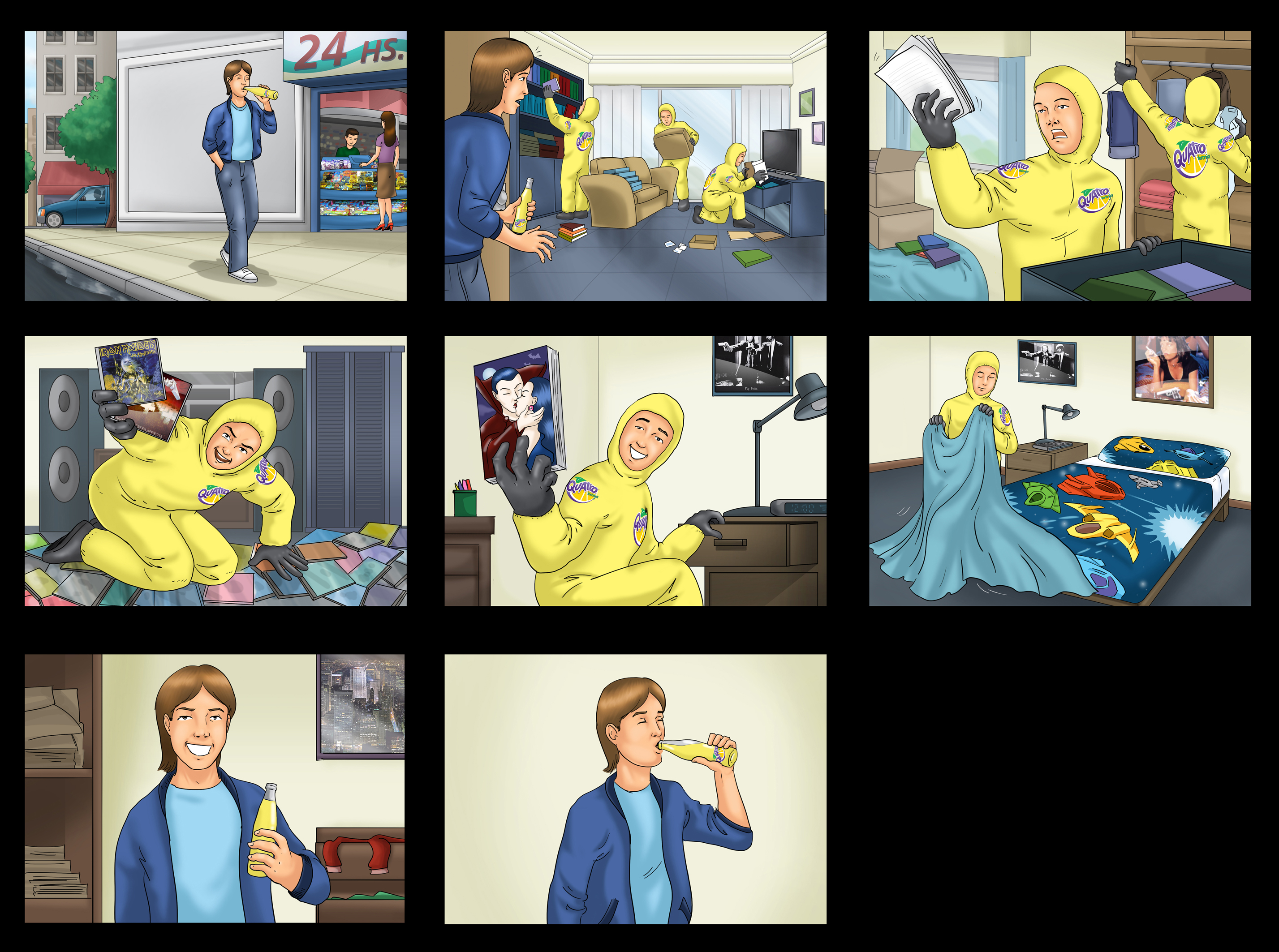 Storyboards for Quatro (soda drink)